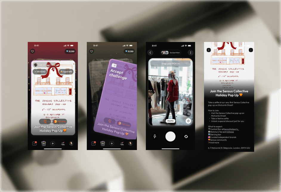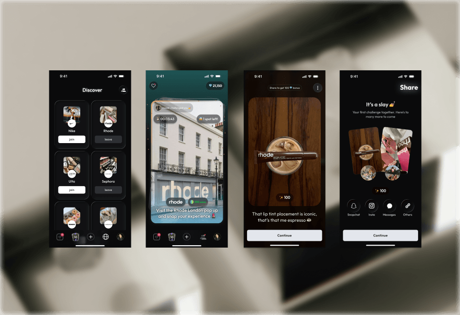 When designing for B2B vs B2C a designer has to understand the fundamental needs of each party, and make sure everyone’s needs are addressed. In this role, an iOS social consumer app where users complete daily challenges such as ‘snap a pic of the cutest dog today’ earn points, and can redeem points for rewards. The main focus was B2C, with the longterm goal of having brands in the app host these challenges. This meant that the base app had to satisfy both user’s immediate emotional needs and attention, while also addressing the operational needs and the return for the brands in the app. I find dumping out all the priorities, pros/cons and needs of everyone is easiest in a big figjam document.